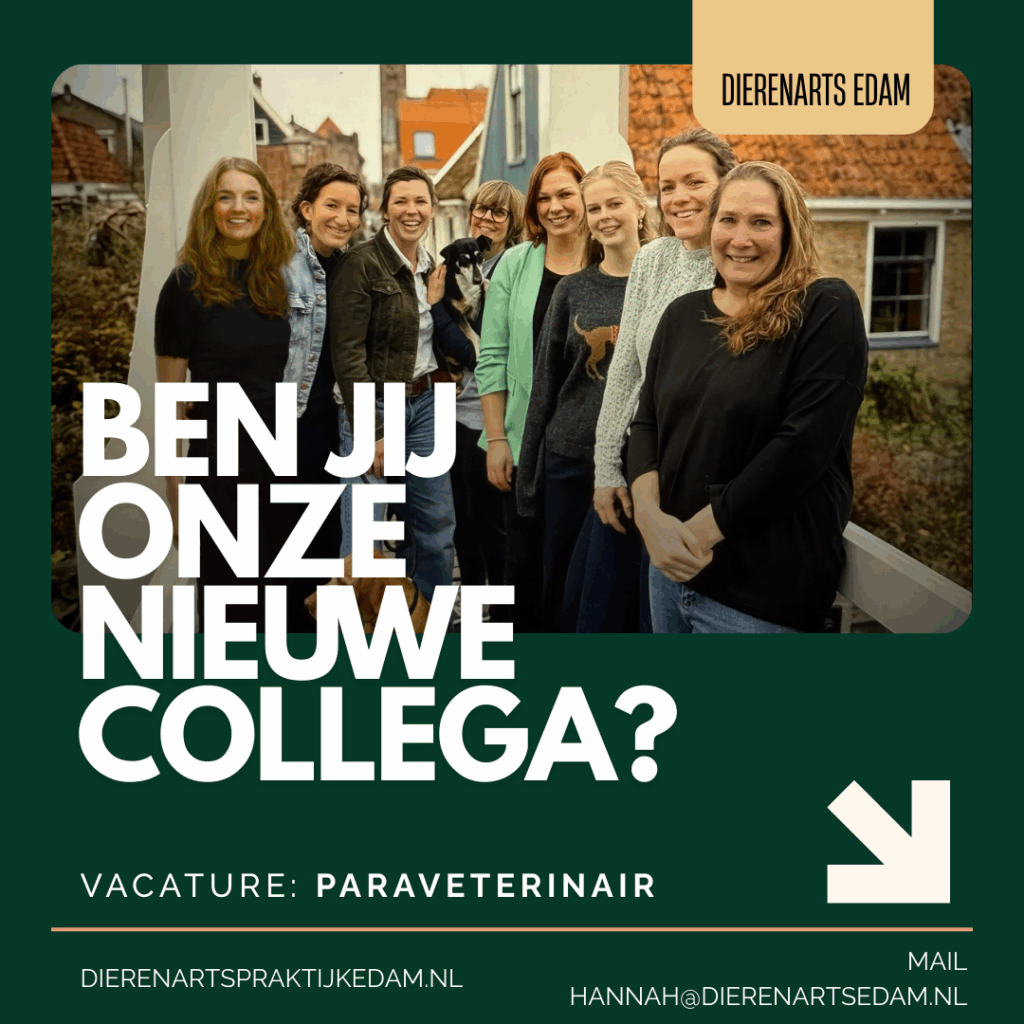 Voor onze zelfstandige en gezellige huisdierenpraktijk in Edam zoeken wij een nieuwe collega.